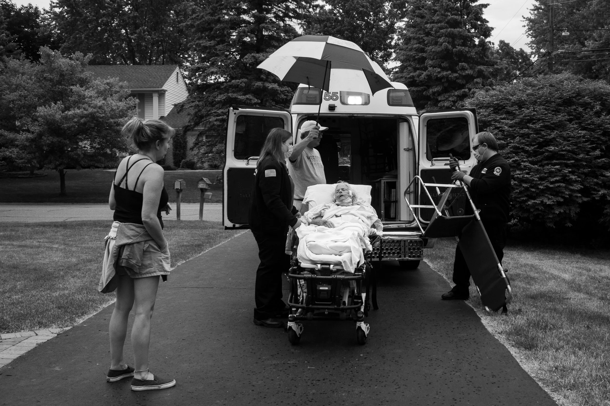 Joan Piccione arrives via ambulance at her daughter Maria McAvoy’s house from the hospital where she was recommended to be put into hospice. Hospice was shocking news to the family so they decided to bring her home so they could help her get better o