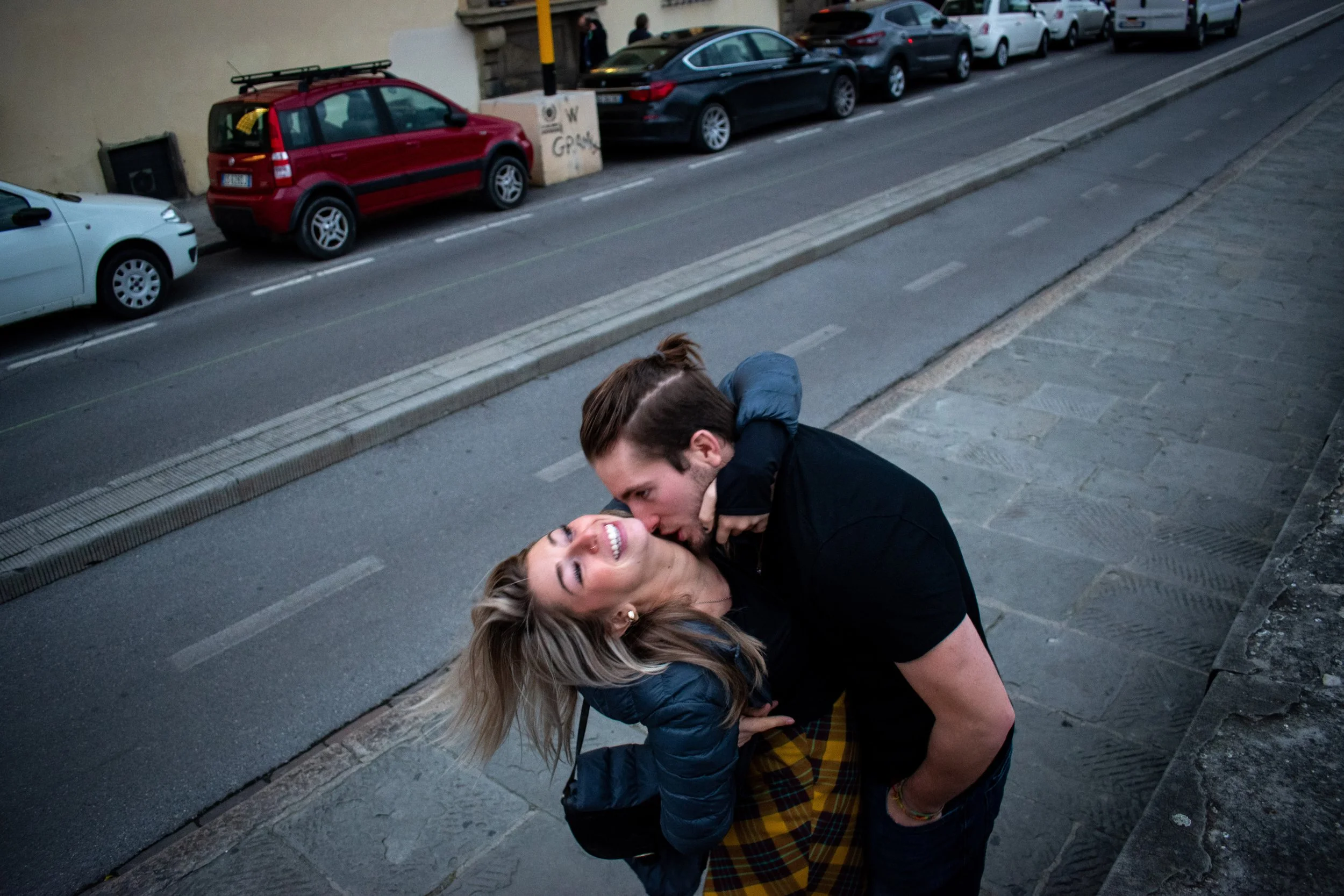 November 16th 2019 Rachel McCellen and Zack Vogel share a romantic moment in Florence Italy while walking along the Arno river after an afternoon wine tasting. Rachel is studying abroad and her boyfriend Zach followed her to italy. View fullsize