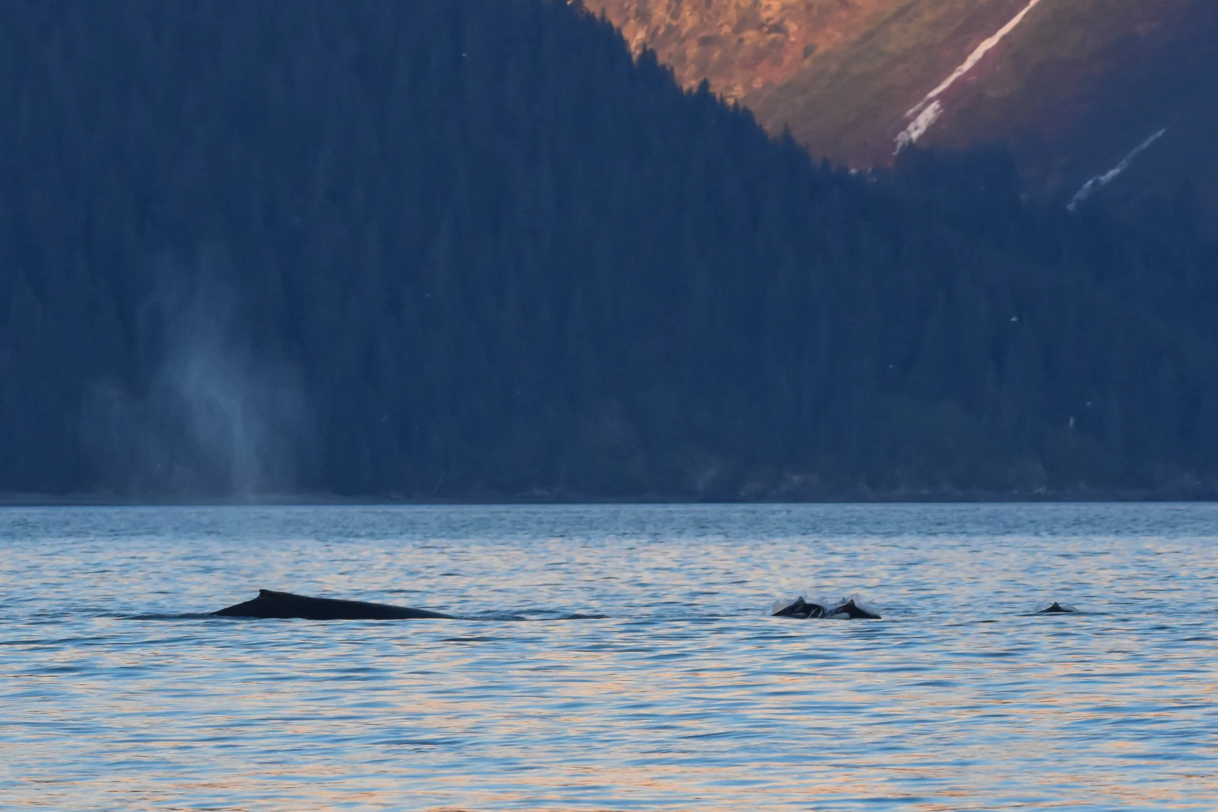 A pod of orca whales stay close to one another as they navigate the golf of Alaska. View fullsize