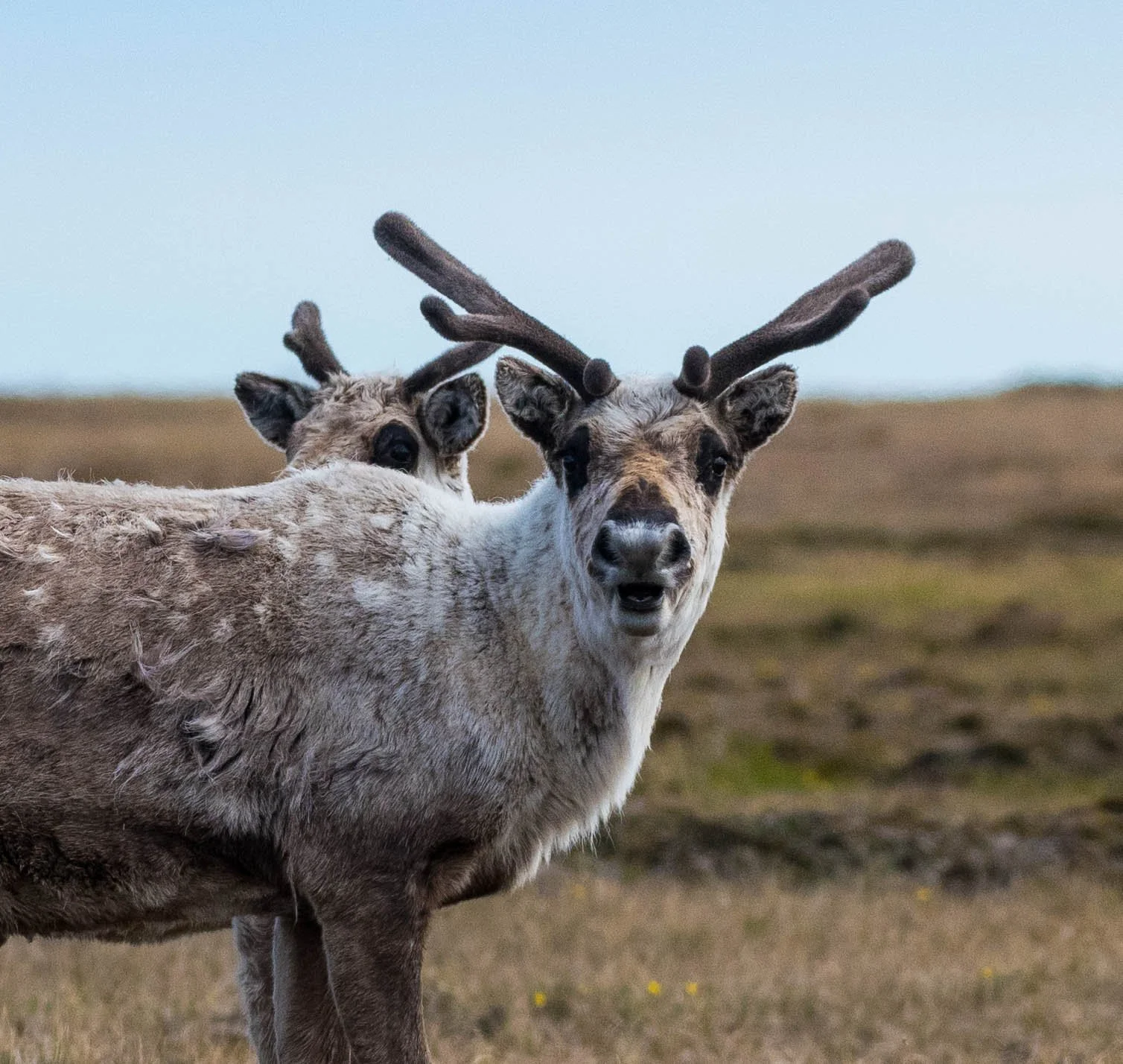 June 27th 2019 Barrow Alaska. A herd of caribou stops in Barrow Alaska during their summer migration. They are currently shedding their winter coats making their fur look patchy. View fullsize