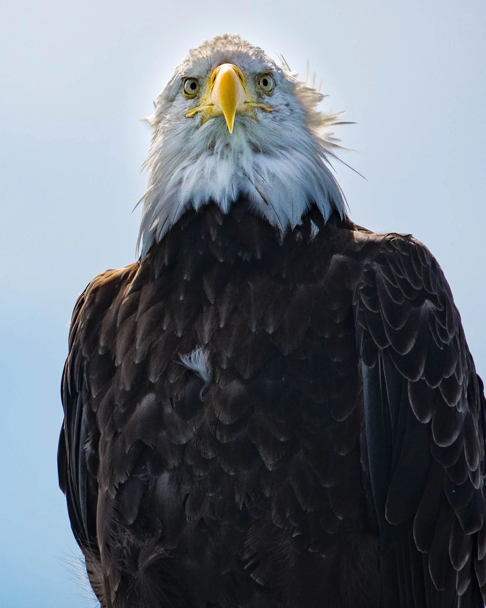 August 8th 2019 an Eagle quietly looks over the blank fjord in Seward Alaska. View fullsize